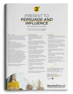 Client presentations, presenting proposals, team meetings, internal/external stakeholder briefings, or any other business communication setting where influencing skills are critical.